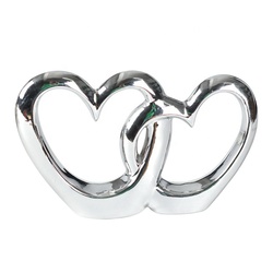 Statue à deux connexions en forme de cœur Sculpture en cœur en céramique platine pour décoration de salon Cadeau de mariage et de Saint-Valentin