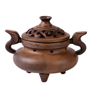 Traditional Tibetan Incense Burner Retro Style Ceramic Censer with Sandalwood and Hollow Ceramic Cover for Aromatic Use