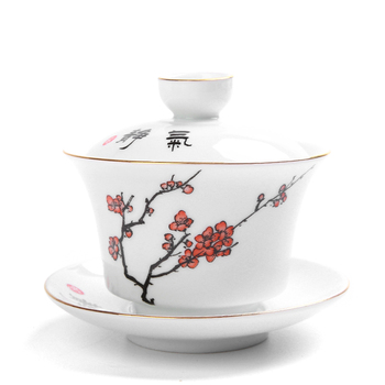 plum Flower Pattern Gongfu Tea Cups Set Lid and Bowl Sancai Gilded Border Ceramic Gaiwan